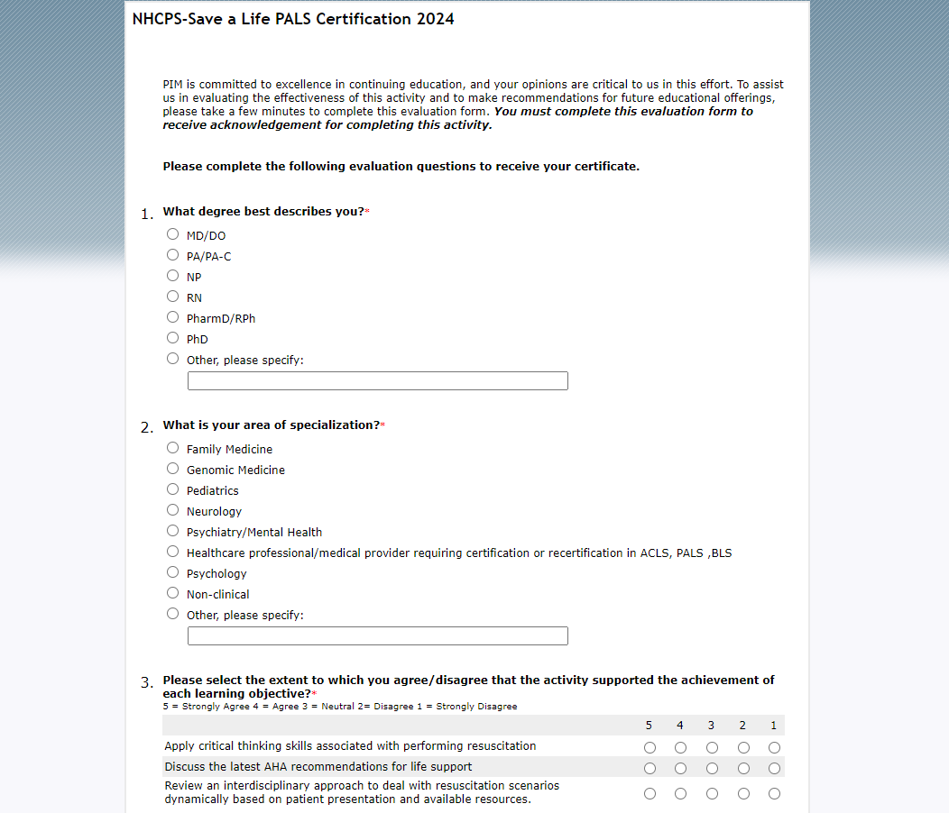 قدّم معهد الدراسات العليا للطب وهيئة إنقاذ حياة التابعة لهيئة الصحة العامة الوطنية (NHCPS) رصيد التعليم الطبي المستمر (CME/CE/CEU) لهذا النشاط. تُصدر شهادات الإتمام رقميًا من خلال جامعة التعليم الطبي المستمر (CME).